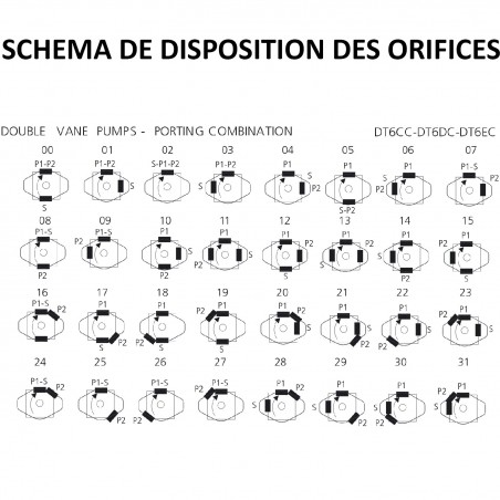 Position du refoulement : 00, 01, 02, 03, 04, 05, 06, 07, 08, 09, 10, 11, 12, 13, 14, 15, 16, 17, 18, 19, 20, 21, 22, 23, 24, 25, 26, 27, 28, 29, 30, 31.